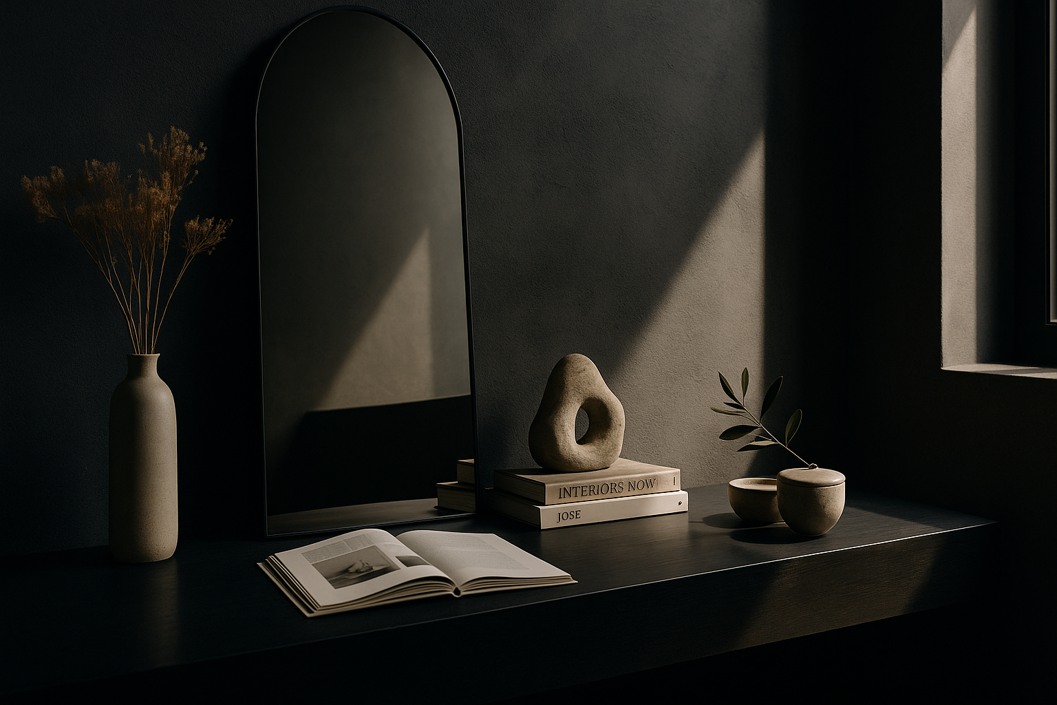 From architectural mirrors to quietly commanding art pieces, each element is placed with purpose. Nothing loud. Everything felt.